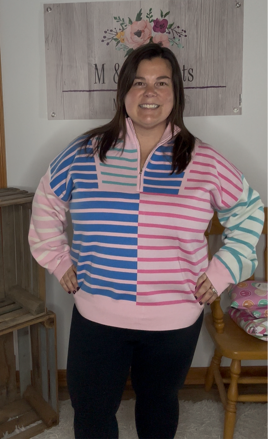 Pink & Blue Striped Quarter Zip Pullover